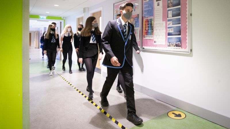 Pupils and teachers in all of England’s secondary schools and colleges will be required to wear face masks in communal areas and corridors from Thursday.